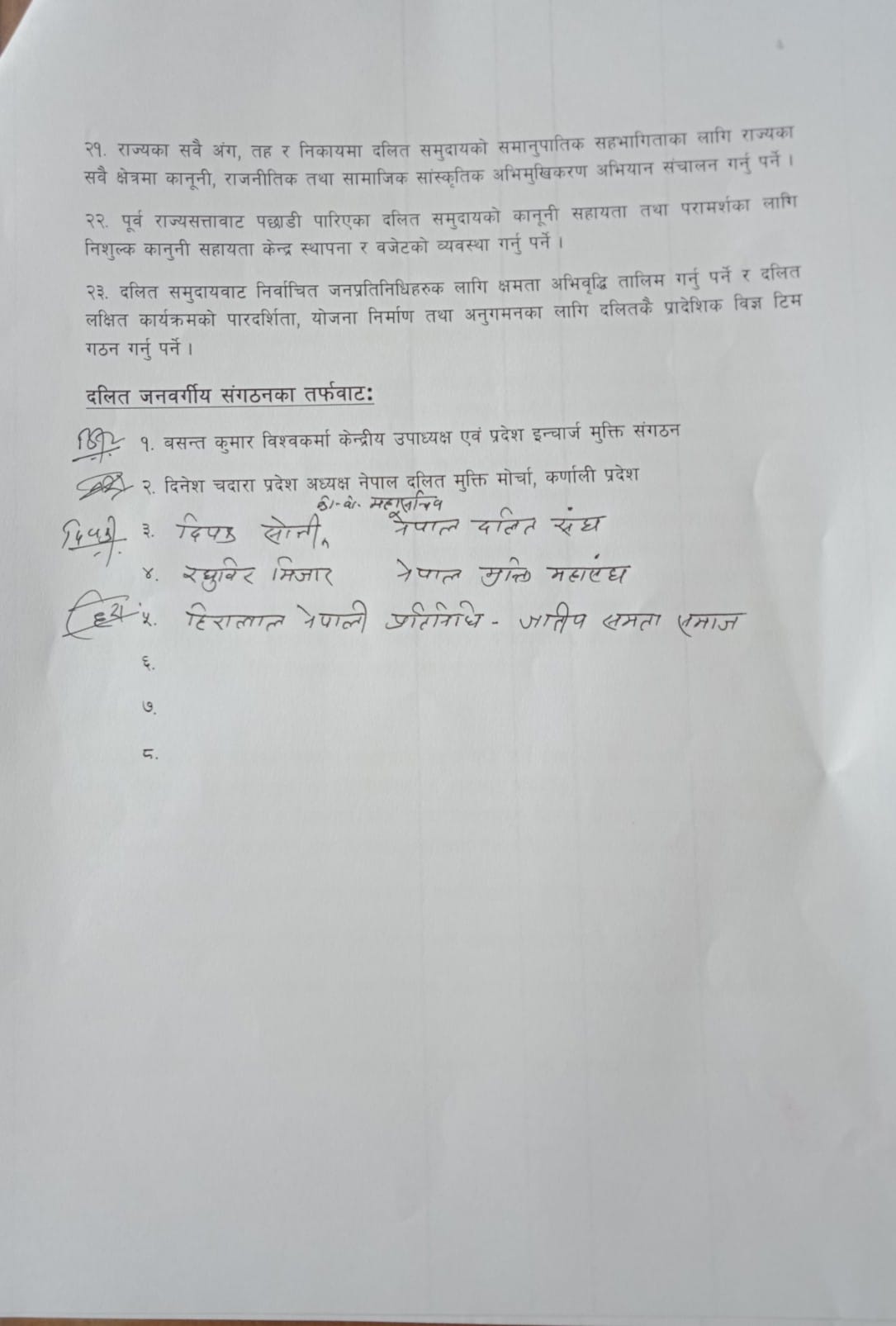 मागहरुलाई प्रदेश सरकारले आगामी आर्थिक बर्ष २०८०/०८१ को नीति, कार्यक्रम तथा बजेटमा समेट्ने गरी मुख्यमन्त्रीलाई पत्र बुझाईएको दलित मुक्ति संगठनका केन्द्रीय उपाध्यक्ष एवं प्रदेश इञ्चार्ज बसन्त कुमार विश्वकर्माले बताए ।